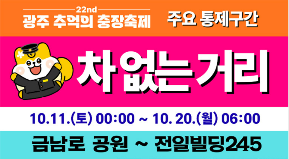 금남로는 행사기간 전면 통제(12:00~22:00) 되므로 진입 불가
