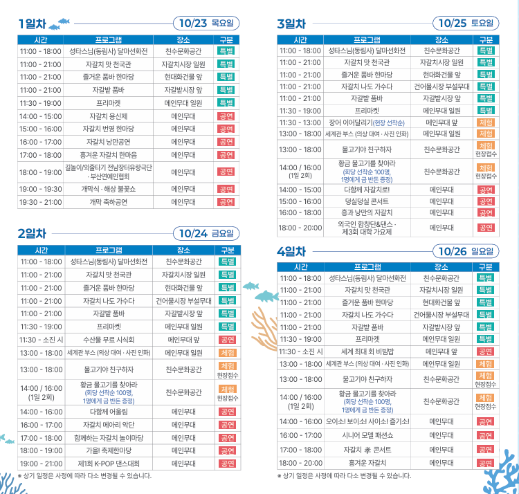 부산 자갈치 축제 프로그램 & 주요 이벤트