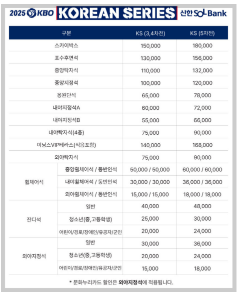한국시리즈 예매 일정 및 시간표