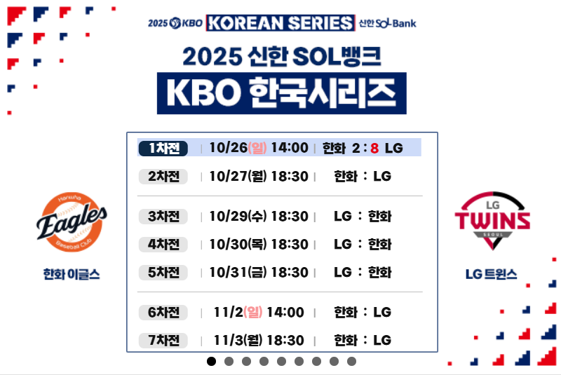 2025 신한 SOL뱅크 KBO 한국시리즈는 LG 트윈스와 한화 이글스의 맞대결로 진행됩니다.