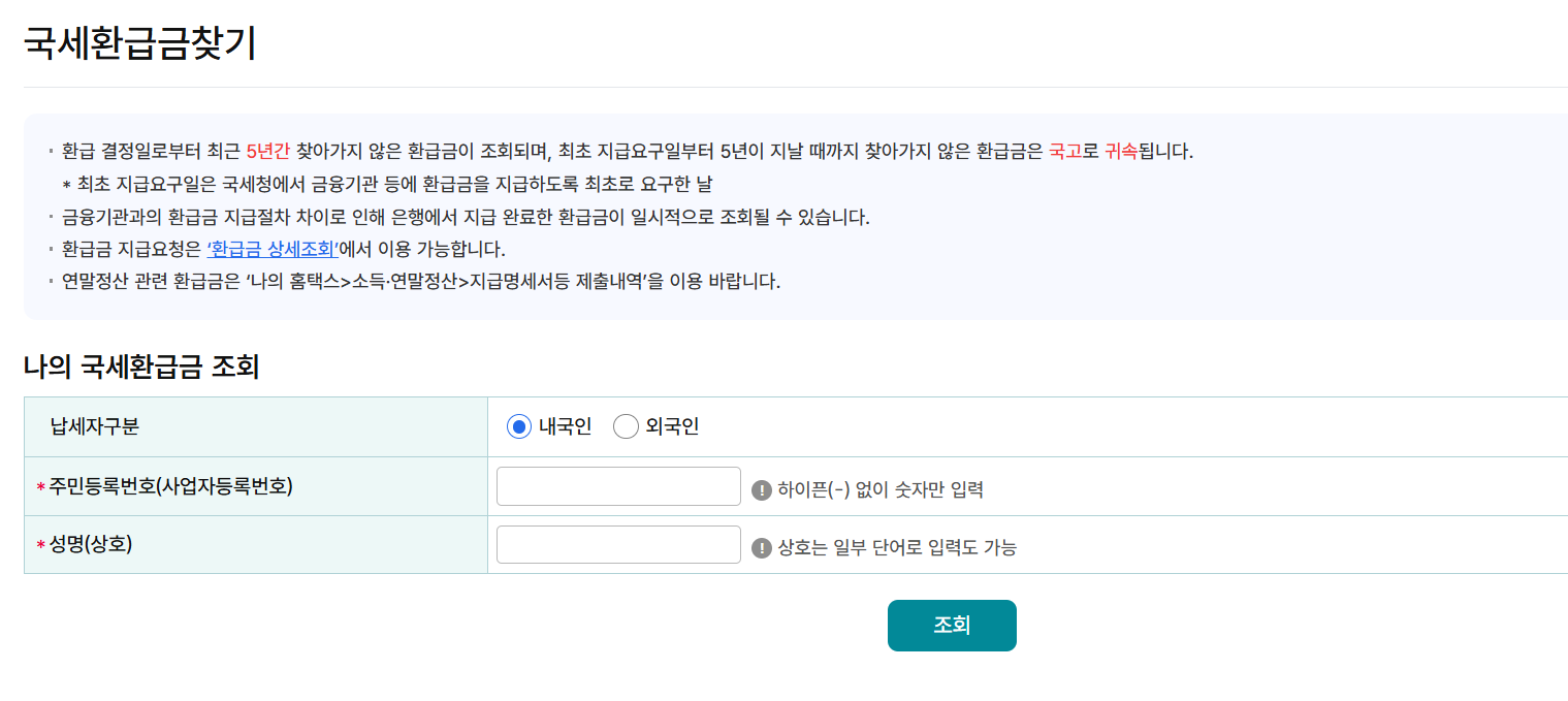 홈택스 ‘국세환급금찾기’를 통해 확인하지 않으면 지급이 지연되거나 소멸될 수 있습니다.