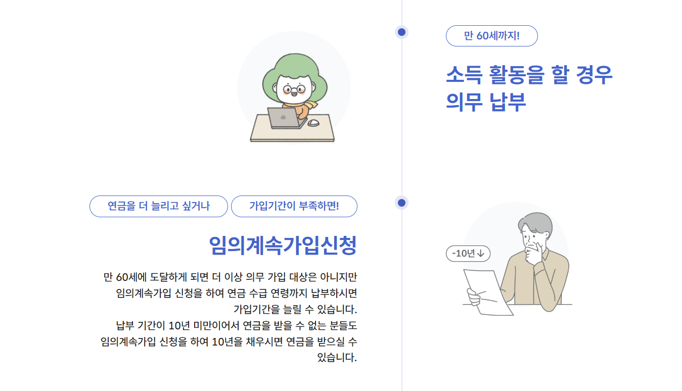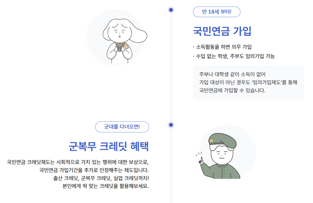● 가입기간: 10년 미만은 수급권 없음, 10년 이상부터 연금 지급