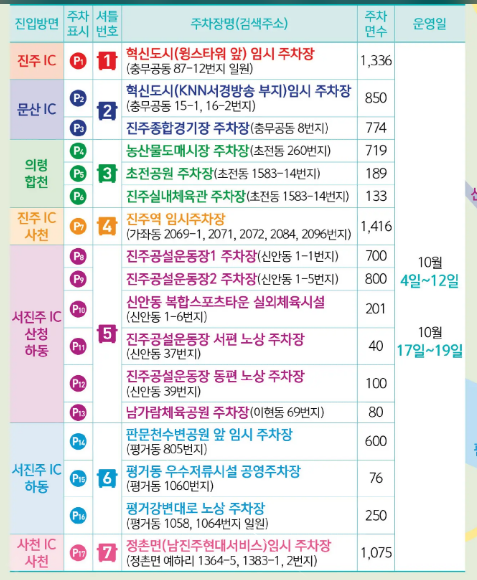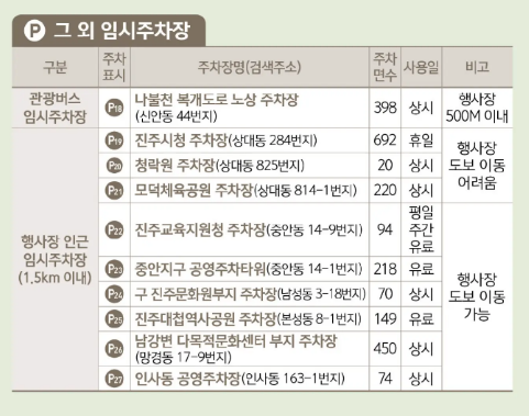 주차: 진주종합경기장, 시청, 임시주차장 / 셔틀버스 운행