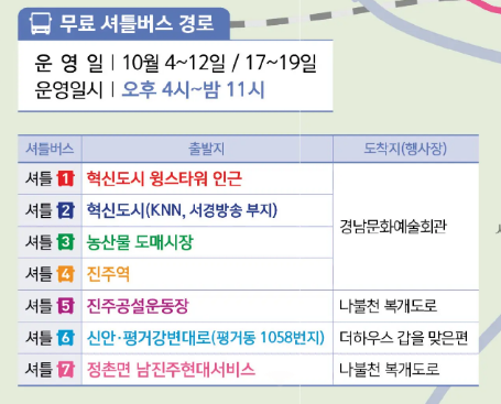 축제기간에는 진주 도심 일대가 매우 혼잡하므로 대중교통 이용을 적극 추천드립니다.