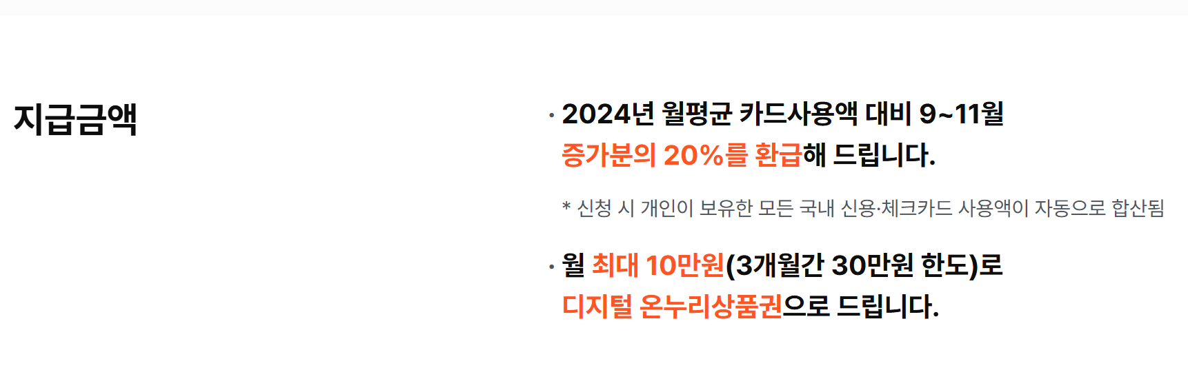 이 제도는 "카드 사용액 전체"가 아니라 전년도 같은 기간 대비 증가한 금액을 기준으로 계산합니다.