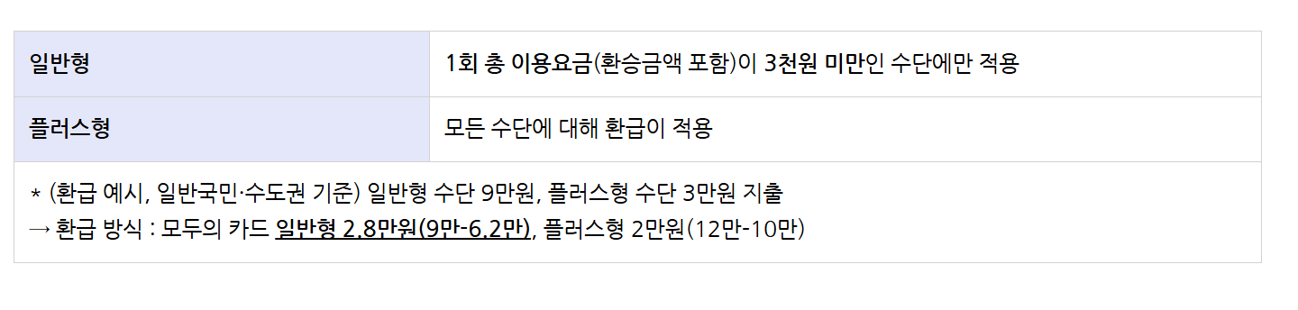 일반형은 1회 이용요금이 3천 원 미만인 대중교통 수단에 적용됩니다.